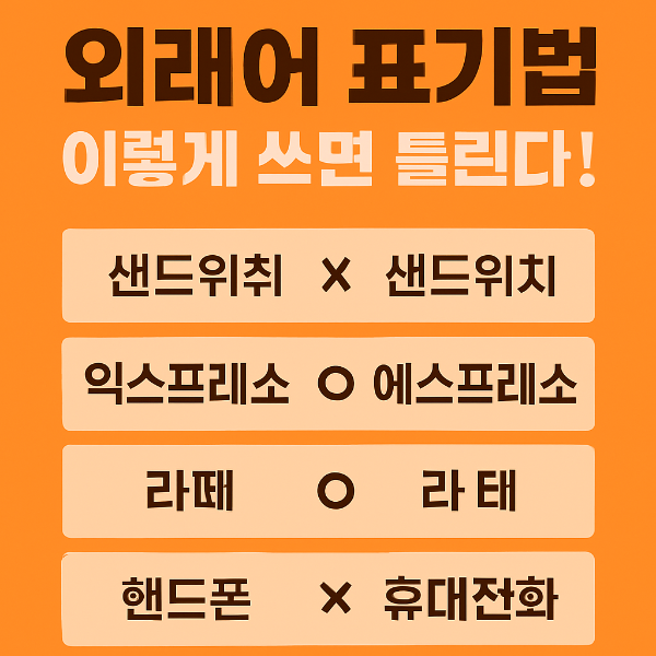 일상 속에서 자주 사용하는 외래어, 과연 올바르게 쓰고 있을까? '샌드위치', '아메리카노', '스마트폰'처럼 익숙한 단어들이지만, 무심코 틀리게 표기하는 경우가 많다. 이 글에서는 자주 틀리는 외래어 표기 사례를 정리하고, 외래어 표기법의 기본 원칙을 함께 알아본다.